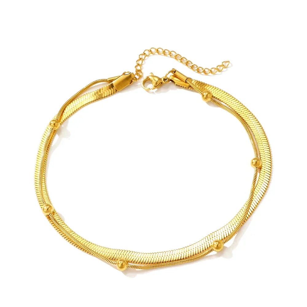 Realce sua Beleza com a Tornozeleira Dupla de Malha Folheada a Ouro: Luxo e Resistência em um Só Acessório!